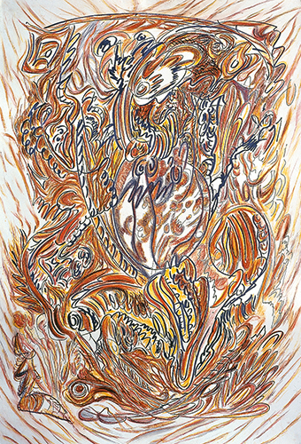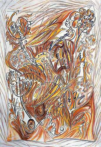 Sans titre, 2003. 120 x 86 cm. Craie, graphite, marqueur sur papier.