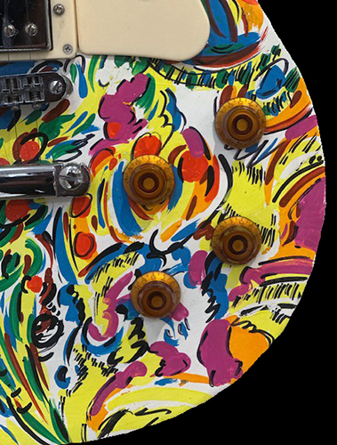 Guitare de Tayeb Benhammou. Détail, iIntervention acrylique, marqueur, 2011.
