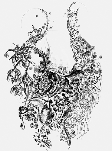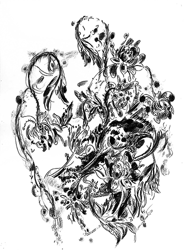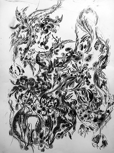 Nid 2, 2016. 30 x 40 cm. Encre, fusain, graphite, marqueur sur papier.