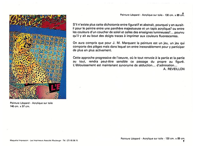 S'il n'existe plus cette dichotomie entre figuratif et abstrait, pourquoi y en aurait-il pour le peintre entre une panthère majestueuse et un tapis acrylique ?